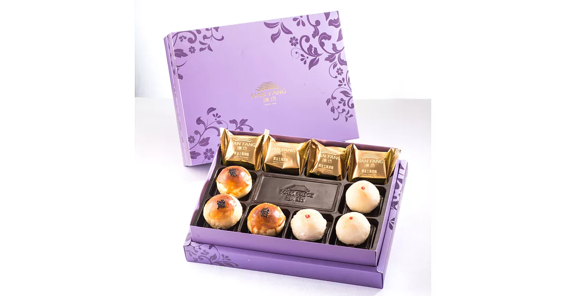 【臻饌】綜合8入禮盒★綠豆椪+純綠豆椪*1+土鳳梨酥+金韻蛋黃酥+綠豆小月餅*2(紫) 售價:462